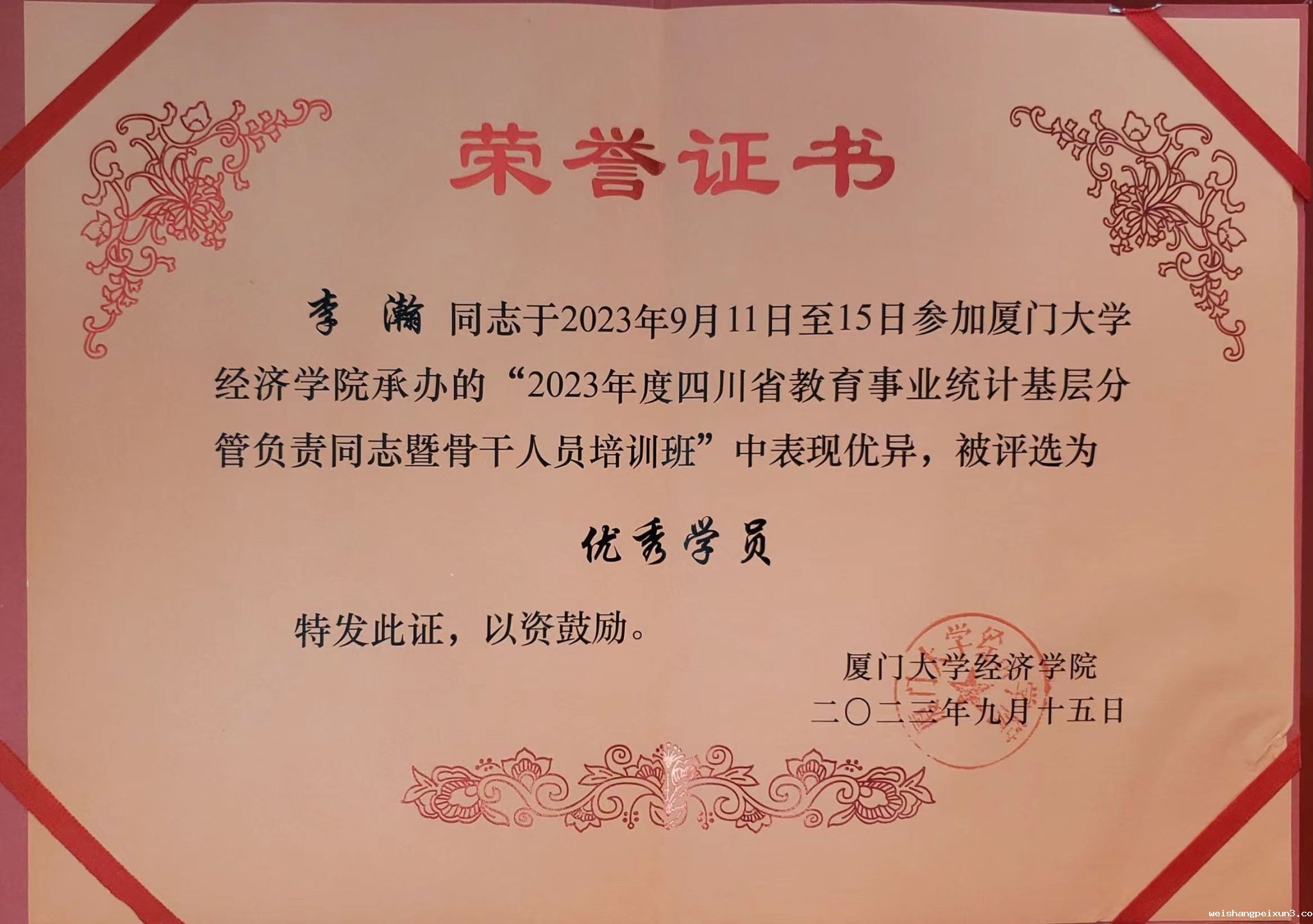 2023年9月12日至15日,四川省教育事业统计基层分管负责同志暨骨干人员专项培训在厦门大学培训基地举行。来自省内部分高校、各市州的分管负责同志和业务骨干近200余人参加了此次培训,我校发展规划处处长吴四九、综合科科长李瀚参加培训。