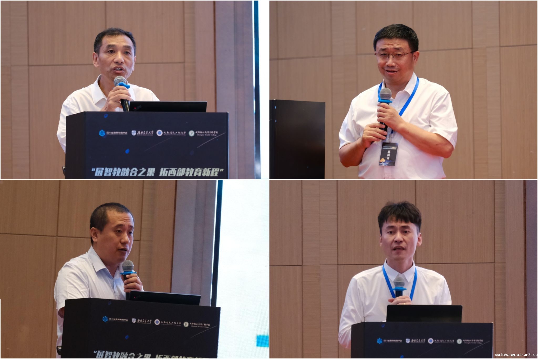 西南交通大学本科生院副院长吕宝雨、成都纺织高等专科学校校长孙锐、成都工业学院校长刘保县、智慧树网知识图谱事业部总经理钱海,分别围绕“多模态智能应用矩阵:西南交通大学AI赋能教育教学创新改革实践”“产学研深度融合,构建创新型高技能人才培养模式”“应用型工科教师数字素养提升的AI革命—以’产教智能体’打通人才培养最后一公里”与“高等教育优势专业的创新实践”等主题作了专题报告。