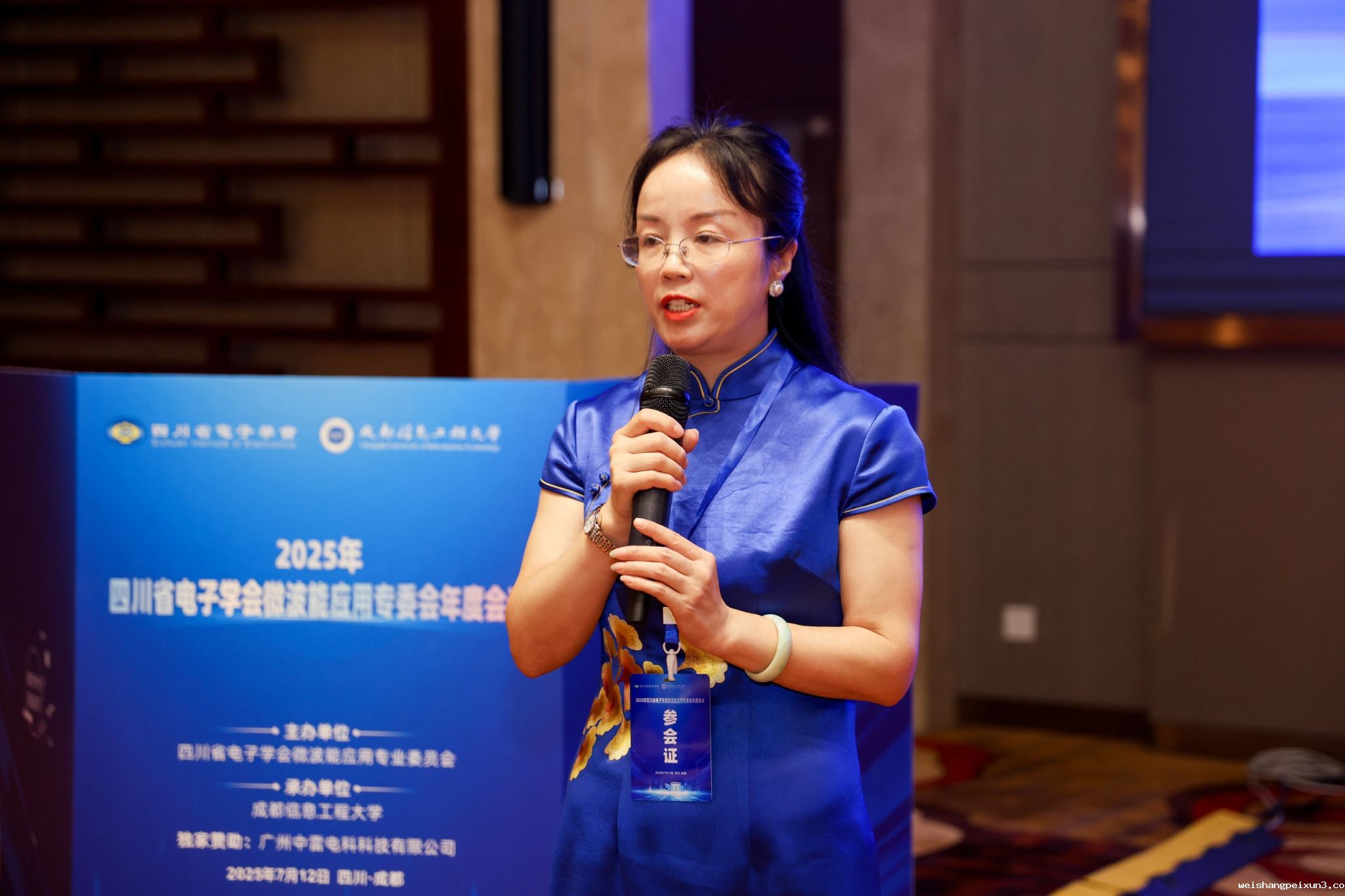 四川省电子学会微波能应用专委会主任委员、四川大学黄卡玛教授发表致辞,回顾了专委会近年来的工作成果,并对未来研究方向提出展望。