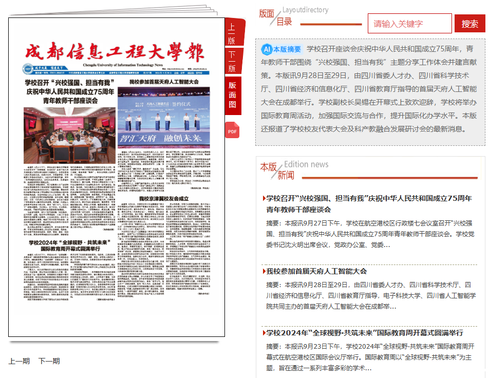 版面底纹图凸显大气科学、电子探测、人工智能、大数据等优势特色学科元素的艺术设计效果。