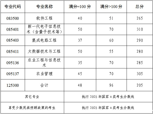 2.满分300分的专业,总分比国家A类考生分数线降20分,单科不做要求。
