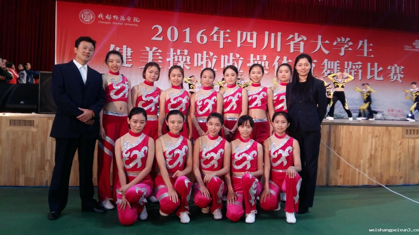 2016年10月14日由四川省教育厅主办的《2016年四川省大学生健美操啦啦操体育舞蹈比赛》在成都师范学院拉开了序幕。我校由体育部樊翔主任领队,教练刘俊彤,赵红梅,莫思梅带队参加了本次赛事。在两天的比赛中大家团结一心、努力拼搏,在普通院校组《校园青春健身操青春魅力规定套路》组别中,斩获四川省普通院校组一等奖的好成绩,其中3名教练均获得教育厅颁发的优秀教练员称号,刘俊彤和莫思梅老师还获得优秀裁判员称号。我校健美操队的精彩表现和精神风貌受到评委和参赛队伍的赞许,再次为学校挣得了荣誉。队员们在比赛结束之后也纷纷表示此次参赛受益匪浅,将在以后的训练中更加努力,力争为学校取得更好的成绩。